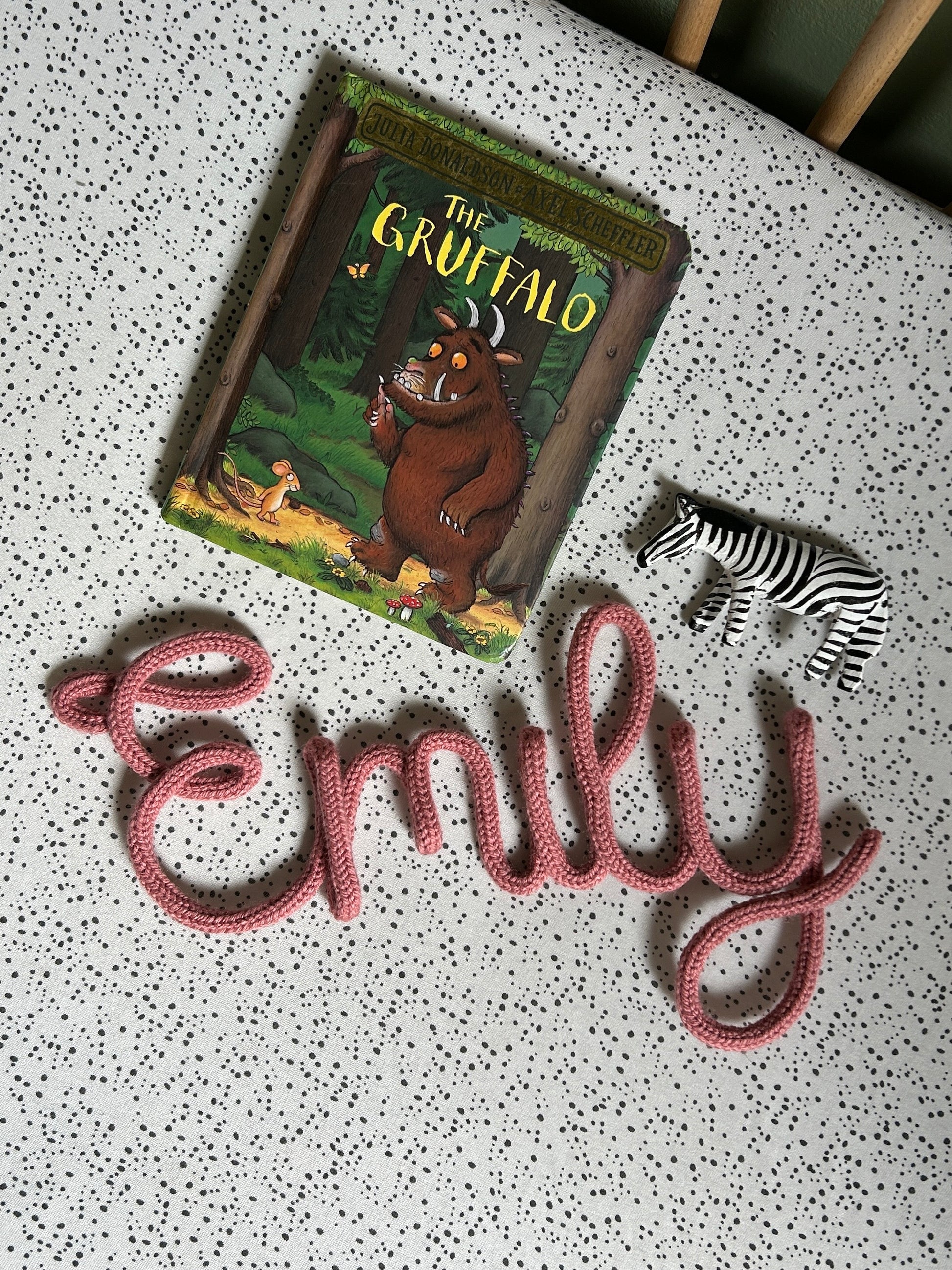 Knitted name wall hanging